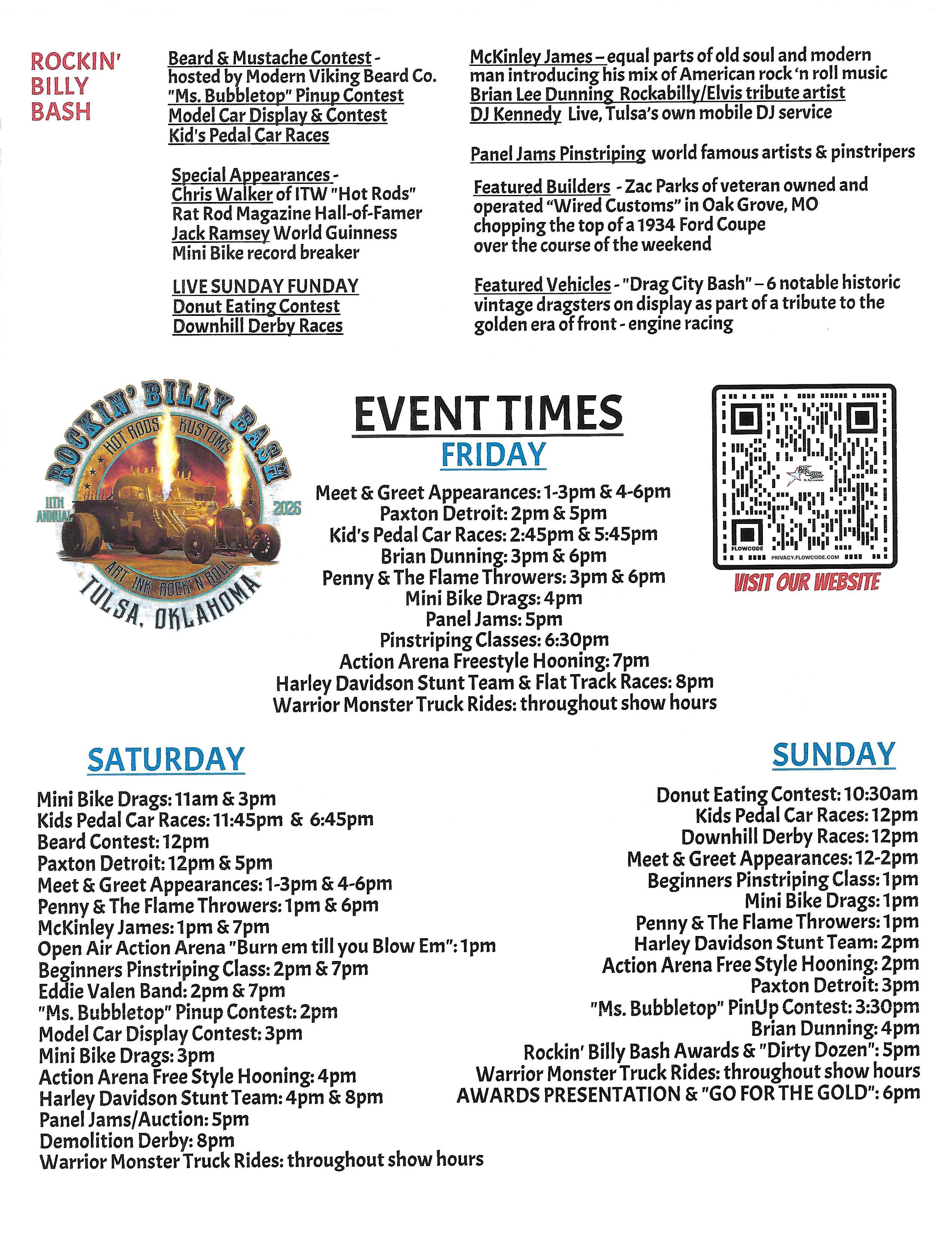 Be sure to come out to the 2026 show and check out the  Rockin' Billy Bash! A celebration of the spirit of the traditional Rod and Kustom kulture, as well as the do it yourself attitude that everyone can relate with. We'll have pinstripers, tattoo artists, rock n' roll, pinup girls, a beard & mustache contest and more through out the entire weekend.